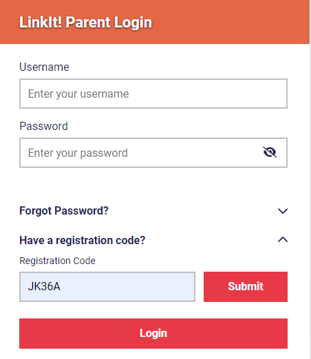 To access your child’s profile, please follow the link below and use your unique registration code to activate your account. Once in the system, you will be prompted to set up a username and password and provide an email address and security question for account reset purposes.